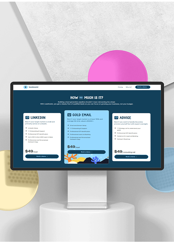 LeadAssist needed a high impact digital presence to support its mission of helping new business owners quickly start earning through LinkedIn and email outreach. They required a visually appealing, custom built website with fast performance, creative animations, and a conversion driven messaging strategy. The site had to repeatedly emphasize financial outcomes boosting leads and increasing revenue to motivate visitors to purchase plans immediately.