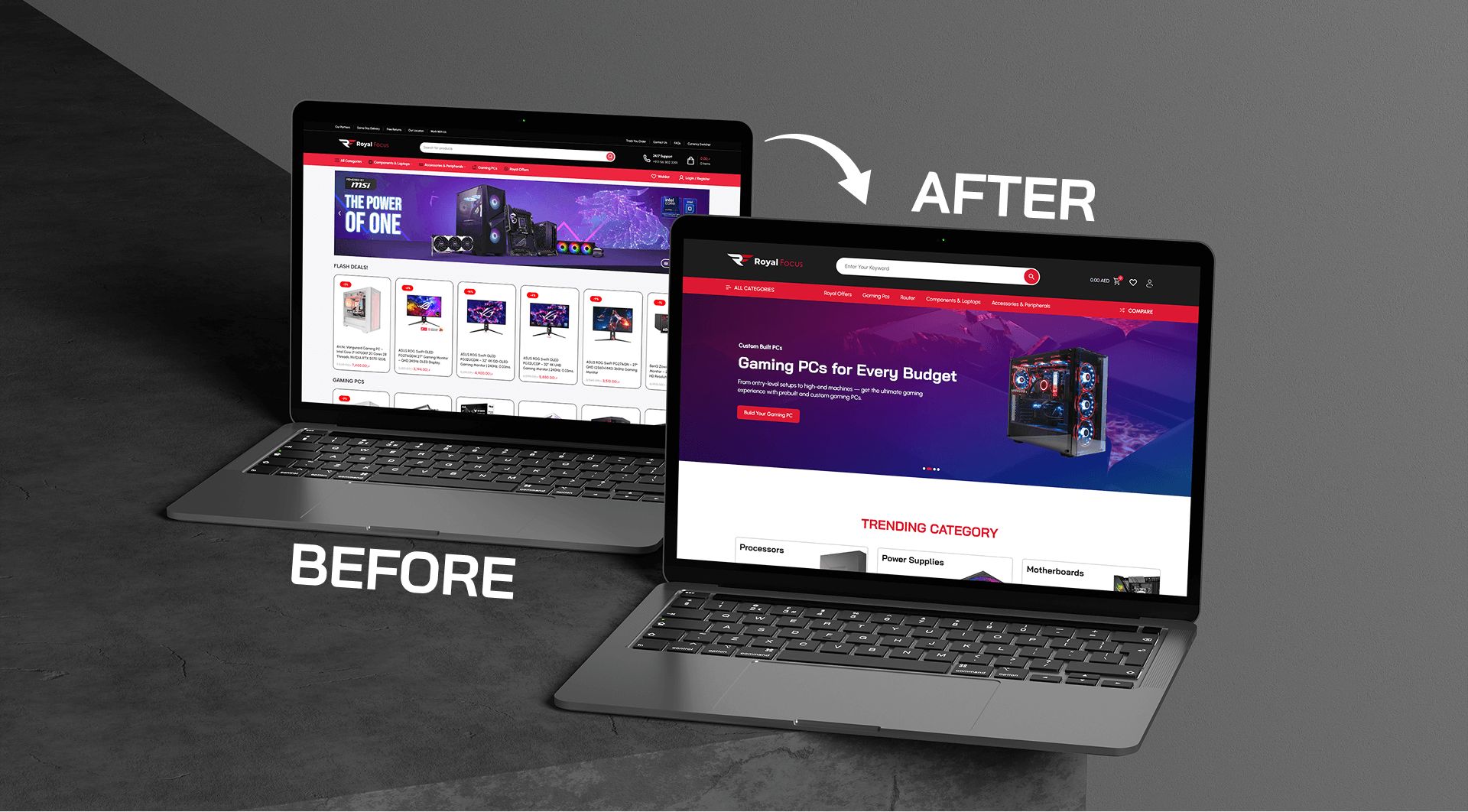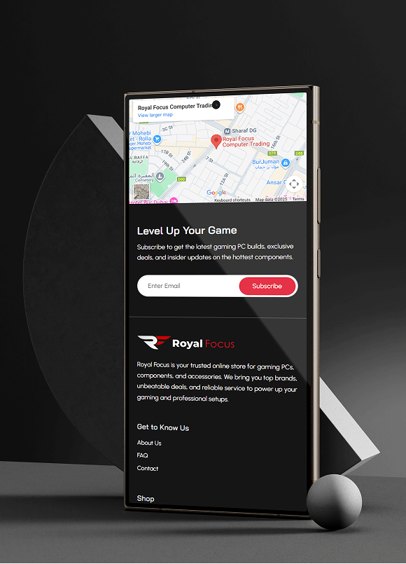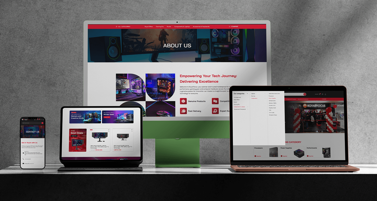 To establish a powerful and high-converting e-commerce presence for Royal Focus by modifying their existing website into a powerful, appealing platform to attract customers, enabling the local Dubai computer shop to successfully transition into the online market, significantly expand its reach across the UAE, and streamline the complex sales process for its core product: custom-built gaming PCs.